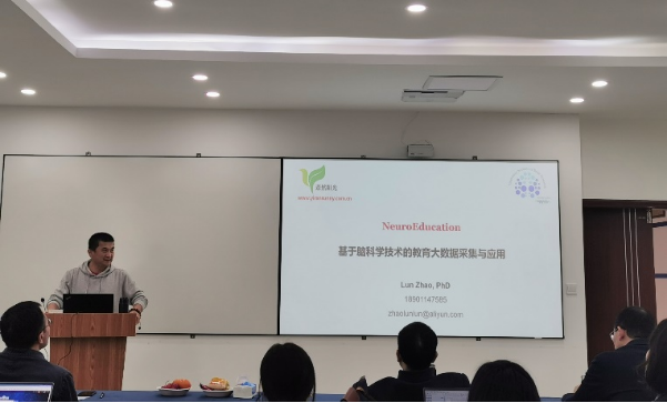 第三部分聚焦脑科学如何应用于教育教学。赵博士论述了将脑科学应用于教育教学过程,以变革学习方式方法、变革课堂教学模式的重要性,倡导让脑科学研究成果从实验室走进课堂。技术层面上,可以通过脑电记录器、数据采集器、数据记录系统和数据分析系统等平台对课堂进行检测以优化教学模式。