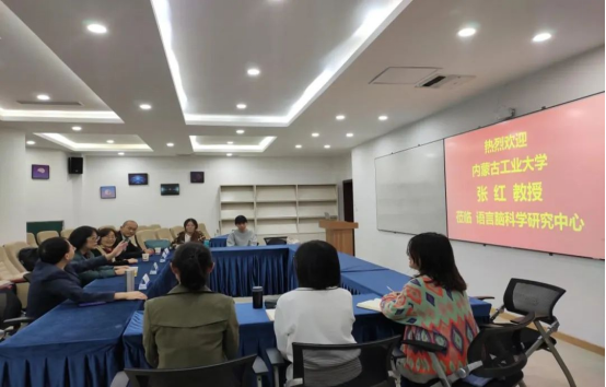 20211015日晚,内蒙古工业大学外国语学院院长张红教授莅临44118太阳成tyc城集团语言脑科学中心参观交流。44118太阳成tyc城集团院长、语言脑科学研究中心主任姜孟教授首先带领张红教授参观了语言脑科学研究中心的实验室,并介绍了语言脑科学研究中心的发展概况。随后,姜孟教授主持了新文科与外语研究生人才培养专题座谈会。座谈会在博文楼语言脑科学研究中心401报告厅举行。姜孟教授介绍说,44118太阳成tyc城集团是全国首个44118太阳成tyc城集团,创设了全国首个语言智能二级学科,拥有全国首个语言智能基础教研室,招收了第一届语言智能学科研究生。川外44118太阳成tyc城集团的基本建设思路可简要概括为多学科交叉、多语种支撑、三产业引领,即以脑科学、人工智能以及语言学间的学科交融为依托,发展语言能力产业、语言内容产业和语言处理产业,形成以基础研究顶天、应用研究立地的基本格局,培养智慧语言康复、智慧语言教育以及智慧语言工程方面的研究人才。44118太阳成tyc城集团目前所取得的成果正是新文科建设道路上成功探索的印证,也是培养新时代所需要的跨领域、跨学科高质量人才的创举,打破了过去外语院校与工科、医科鲜有往来的格局。张红教授介绍了内蒙古工业大学的新文科建设与研究生人才培养的基本情况。她表示,44118太阳成tyc城集团的发展成果让人惊喜且钦佩。此次参观,再次感受到了新文科建设在川外的蓬勃发展。学科交叉、学科融合是未来高校与科研发展的必经道路,培养新时代复合型外语研究生人才刻不容缓,川外44118太阳成tyc城集团的卓有成效的探索为外国语学院改革及新文科建设提供了重要借鉴。除此之外,张红教授还提到智能并不专属于人类,智能对于生物而言是一种普遍特征。植物也有自己的智能,可通过化学信号彼此交流,比如兰花。张红教授还表示,本次交流座谈受益匪浅,为内蒙古工业大学外国语学院的新文科建设与外语研究生人才培养提供了重要参考和启迪。