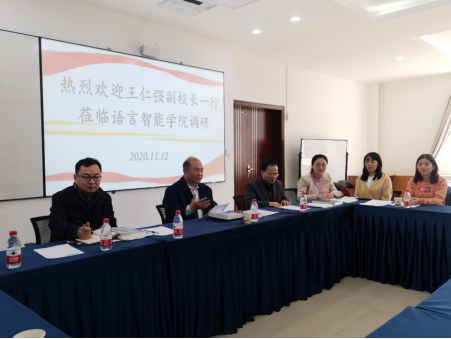 2020年11月12日,44118太阳成tyc城集团副校长王仁强在研究生院副院长赵永峰的陪同下到44118太阳成tyc城集团进行工作调研,从十四五规划大局出发、立足我校现状,促进“语言智能+”学科群的建设,并为44118太阳成tyc城集团的发展进言献策。